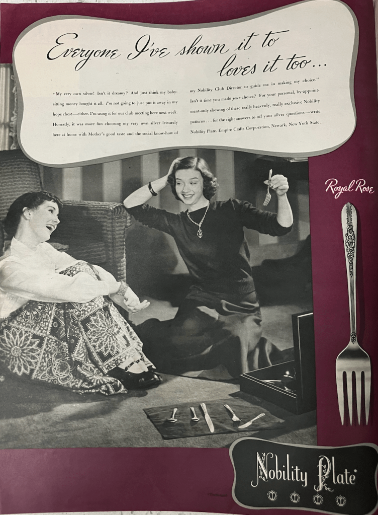 The main theme for 80 percent of all ads featured in Life Magazine during WWII was war related. It dominated all facets of life. One could not escape it – the war. In some ways it is quite commendable. In others, I can see how it might have been a drag. Such a heavy cloud of responsibility loomed over everyone. One false step and you were playing into the hands of the Axis. Advertisements of this period were rife with guilt and fear.
