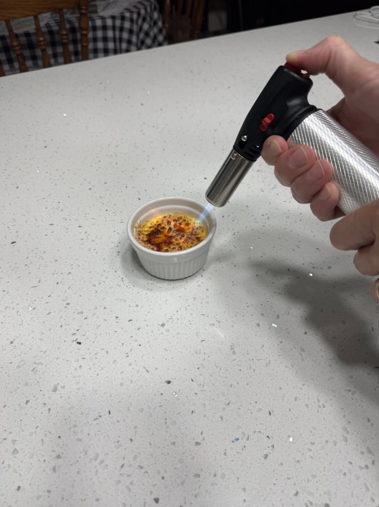 Note – If you don’t own a kitchen torch, try until a candle lighter. It might work in a pinch! Just make sure to hover over the sugar to brown it. It’s okay to light it on fire for a brief second, but make sure it doesn’t char.