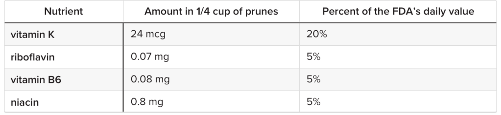 Time will tell if those six prunes will give me more energy. It can’t hurt to have more potassium in your diet. One serving of prunes also contains: