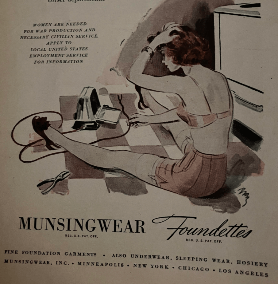 My favorite part of this ad is the call Munsingwear puts out to all women. That little paragraph that pleads, “Women are needed for war production and necessary civilian service. Apply to local United States employment service for information.”